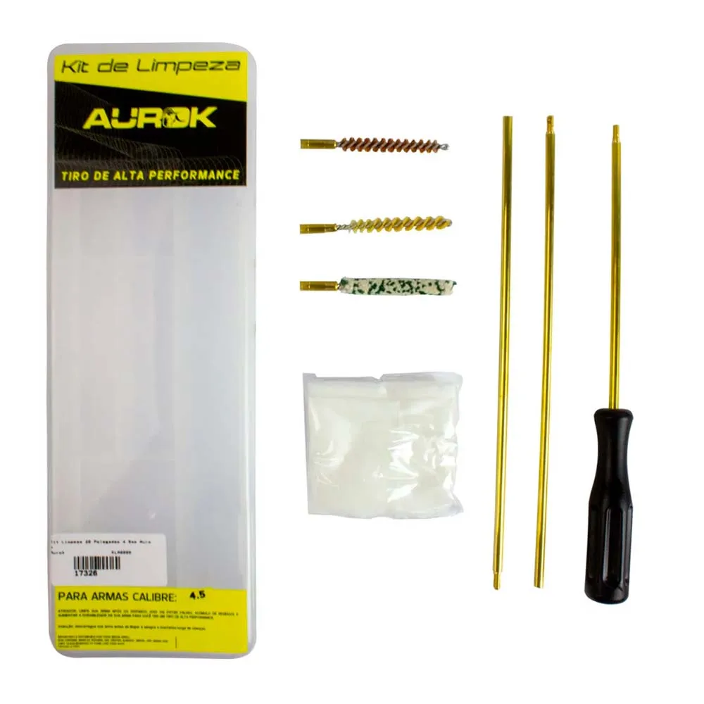 O Kit de Limpeza Aurok para Arma Longa 20 Pol. 4.5mm é composto por uma vareta desmontável e 3 escovas que devem ser rosqueadas na ponta dessa vareta para a realização da limpeza do cano. As escovas que compõem esse kit são fabricadas com materiais de alta qualidade que não danificam o cano de seu equipamento.