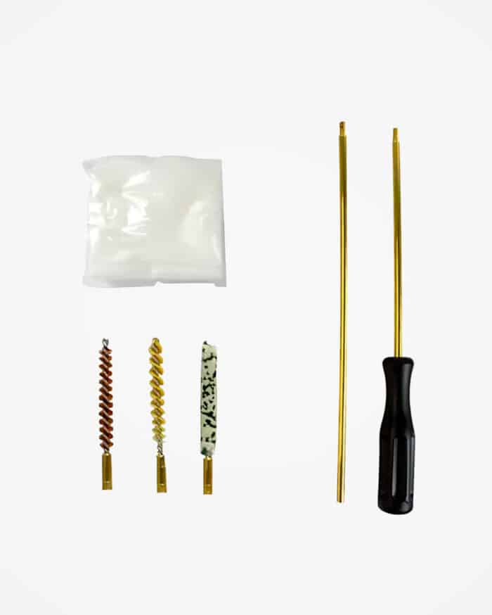 Kit para limpeza do cano Aurok, para carabinas de pressão de calibre 6.35mm com varetas e escovas. A limpeza de forma adequada e periódica evita o acúmulo de resíduos de chumbo no interior do cano e garante o bom funcionamento da carabina.